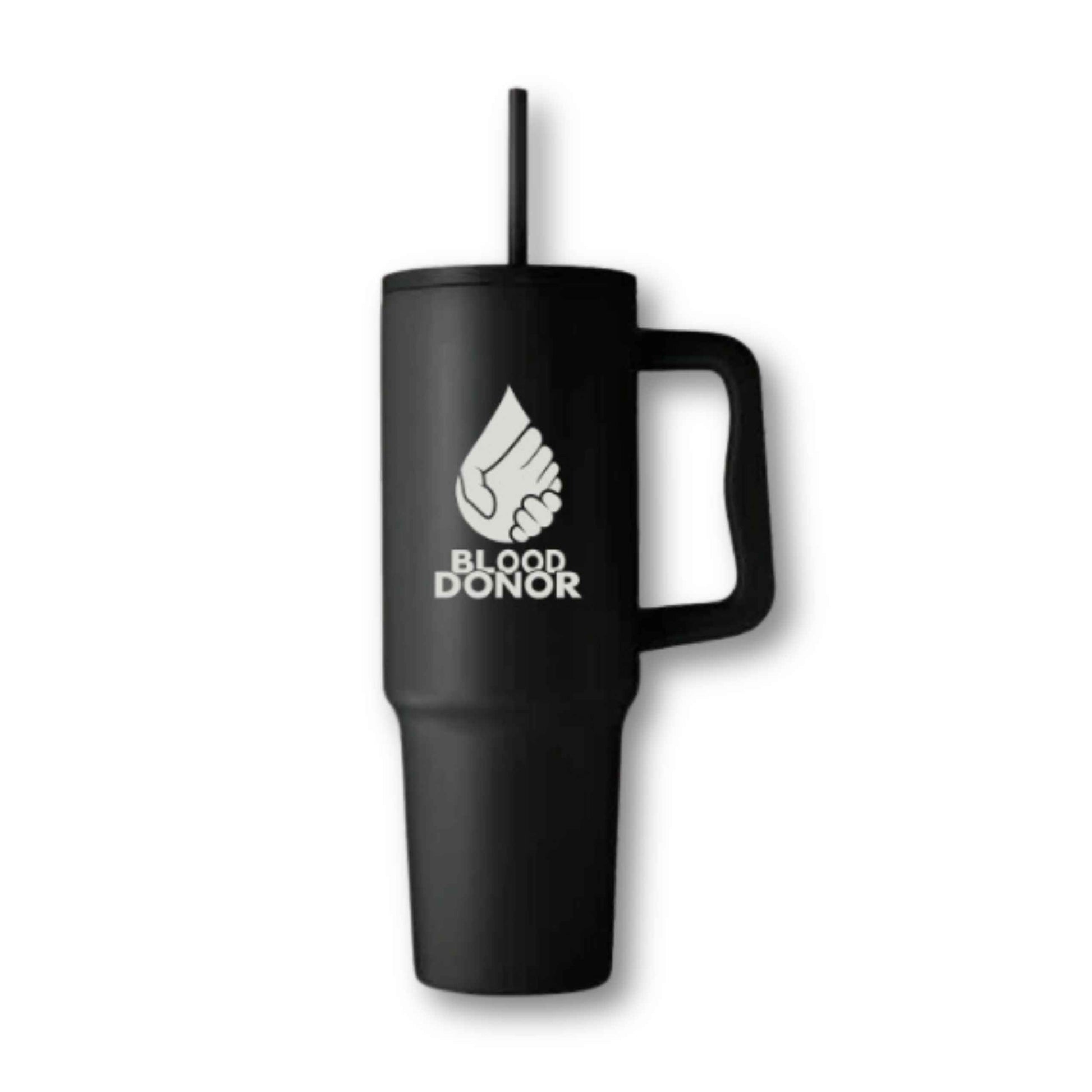 Sip your favorite beverage while you’re on the go. The 40 oz. Stainless Steel Tumbler has a sturdy handle and a screw-on, spill-resistant lid with a straw. Its durable stainless-steel construction keeps your drink cold for 24 hours or hot for up to 8 hours.